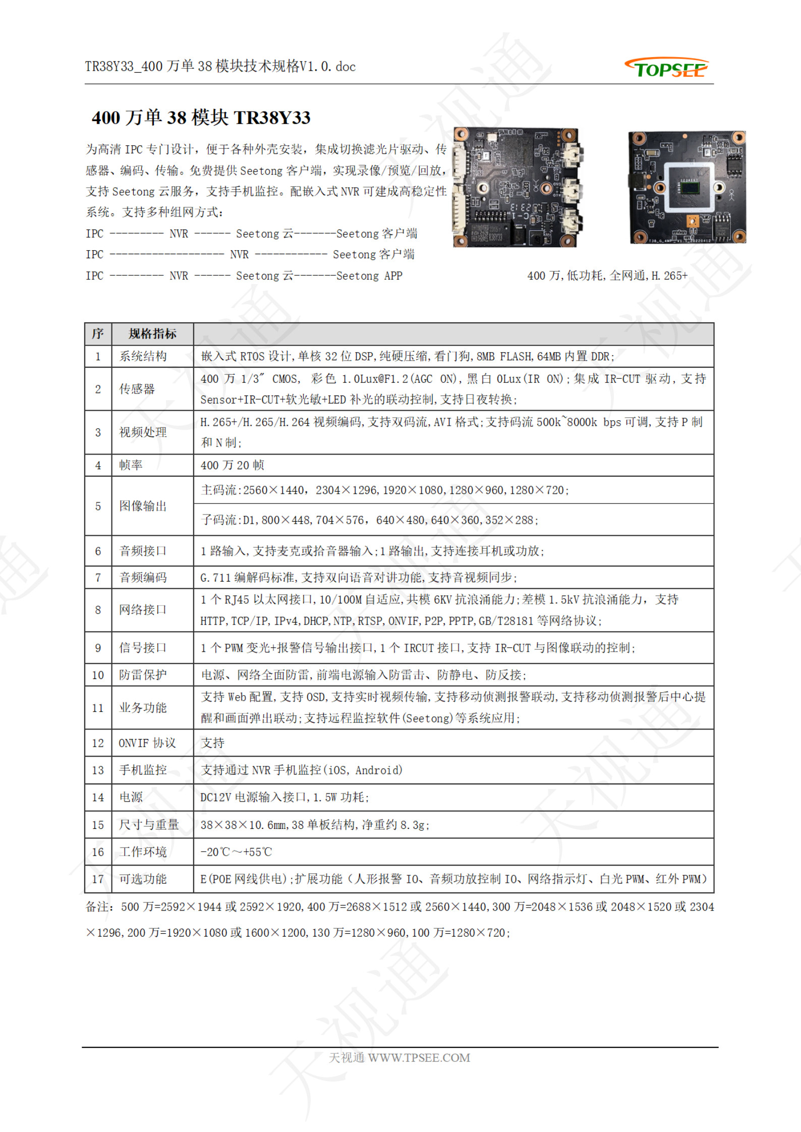 天视通模组摄像头: